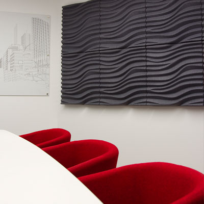 Our Acoustic Wall and Ceiling panels are currently available in a number of eye catching designs that will enhance the interior of any office project. Our Soundtect™ Acoustical panels are also available in a choice of colours to again compliment your project and for the more bespoke applications.